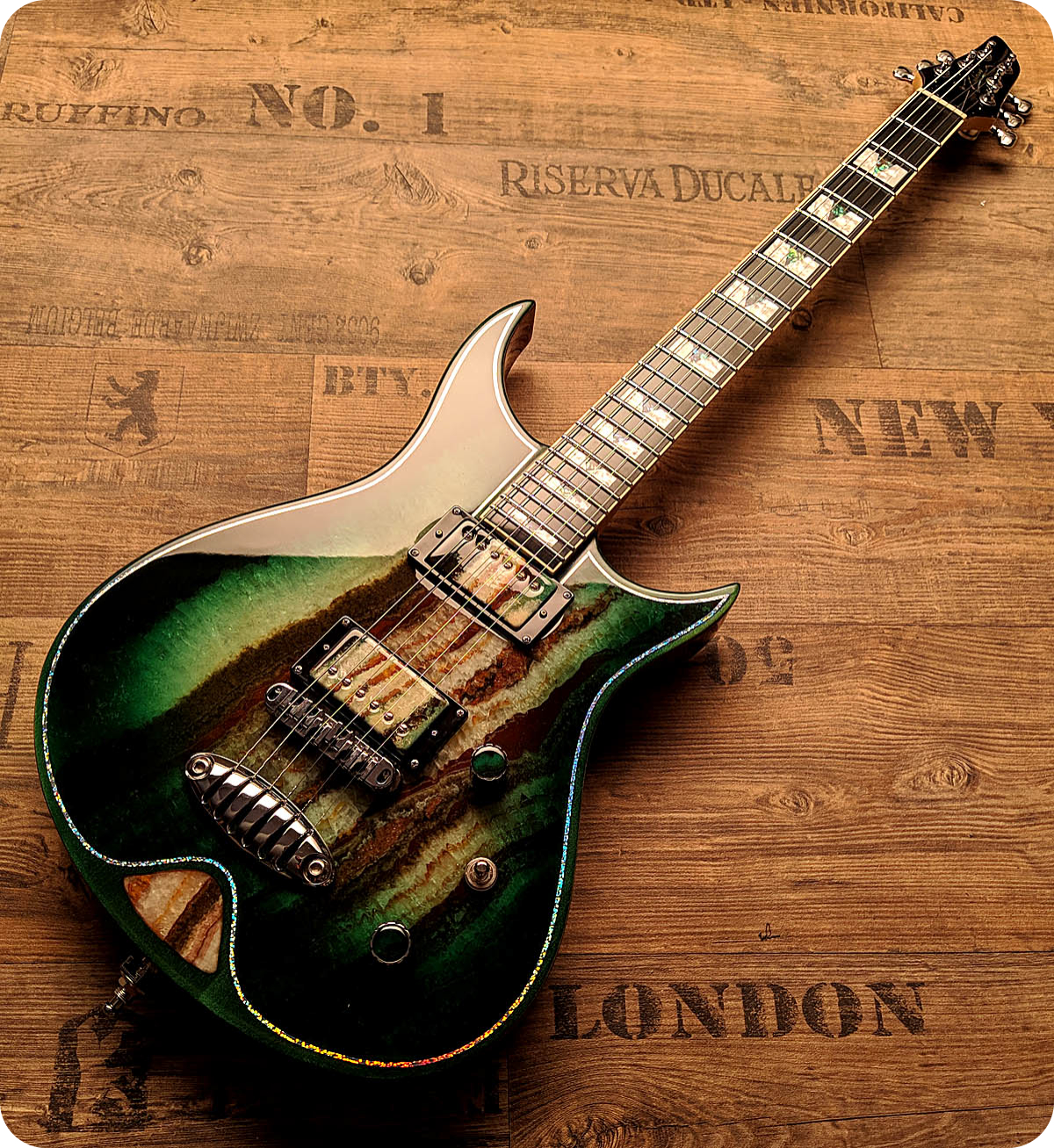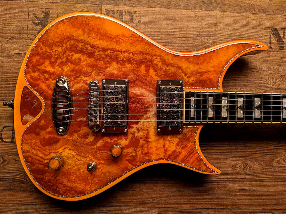 Bei den Decken dieser einzigartigen Gitarren handelt es sich nicht um irgendein Airbrush, Foto-Finish, Keramik, Kunststein, Plastik oder